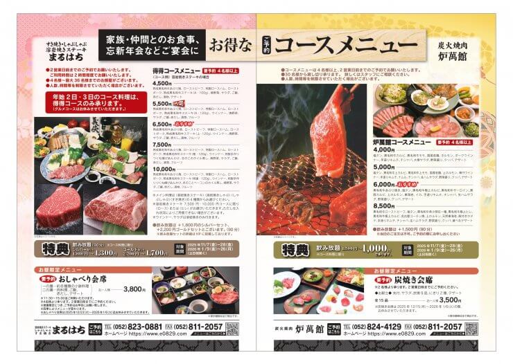 2025 ギフトセール/肉料理おせち 2025.10.21 パンフレット 一覧に戻る 精肉販売 オードブル・BBQメニュー・精肉 揚げ物メニュー カテゴリ お知らせ パンフレット レストランまるはち 炭火焼肉 炉萬館 精肉店まるはち 最新記事 2025.10.21 2025 ギフトセール/肉料理おせち 2020.08.18 精肉販売 オードブル・BBQメニュー・精肉 揚げ物… 2020.05.12 【当日お持ち帰り可能!】レストランまるはち・炉萬館… 2020.04.18 炉萬館★テイクアウト 2020.04.11 レストランまるはち★テイクアウト 過去記事 2025年 10月 (1) 2020年 8月 (1) 5月 (1) 4月 (2) 3月 (1) 2018年 8月 (1)